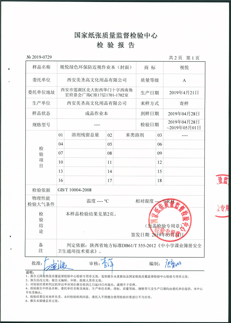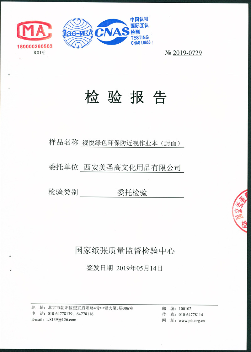 視悅綠色環(huán)保防近視作業(yè)本(封面 )國檢