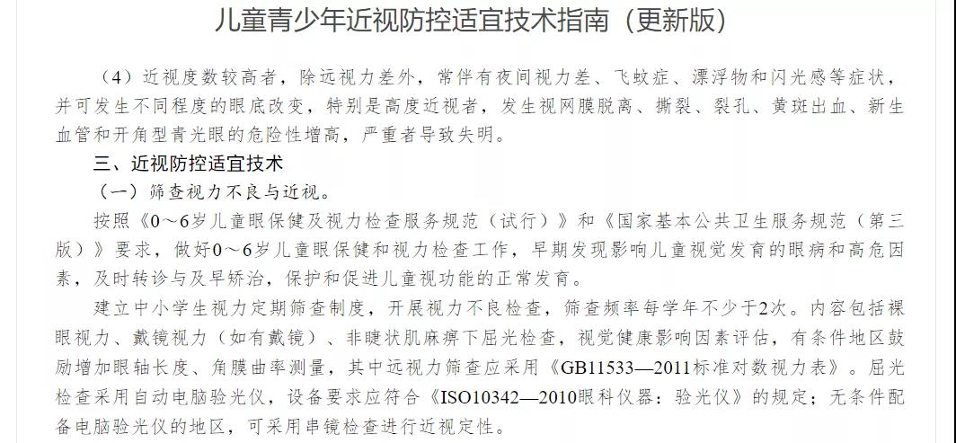 近日,國家衛(wèi)健委啟動全國第二批兒童青少年近視防控適宜技術試點工作,并印發(fā)《兒童青少年近視防控適宜技術指南(更新版)》,要求建立中小學生視力定期篩查制度,開展視力不良檢查,篩查頻率每學年不少于2次。