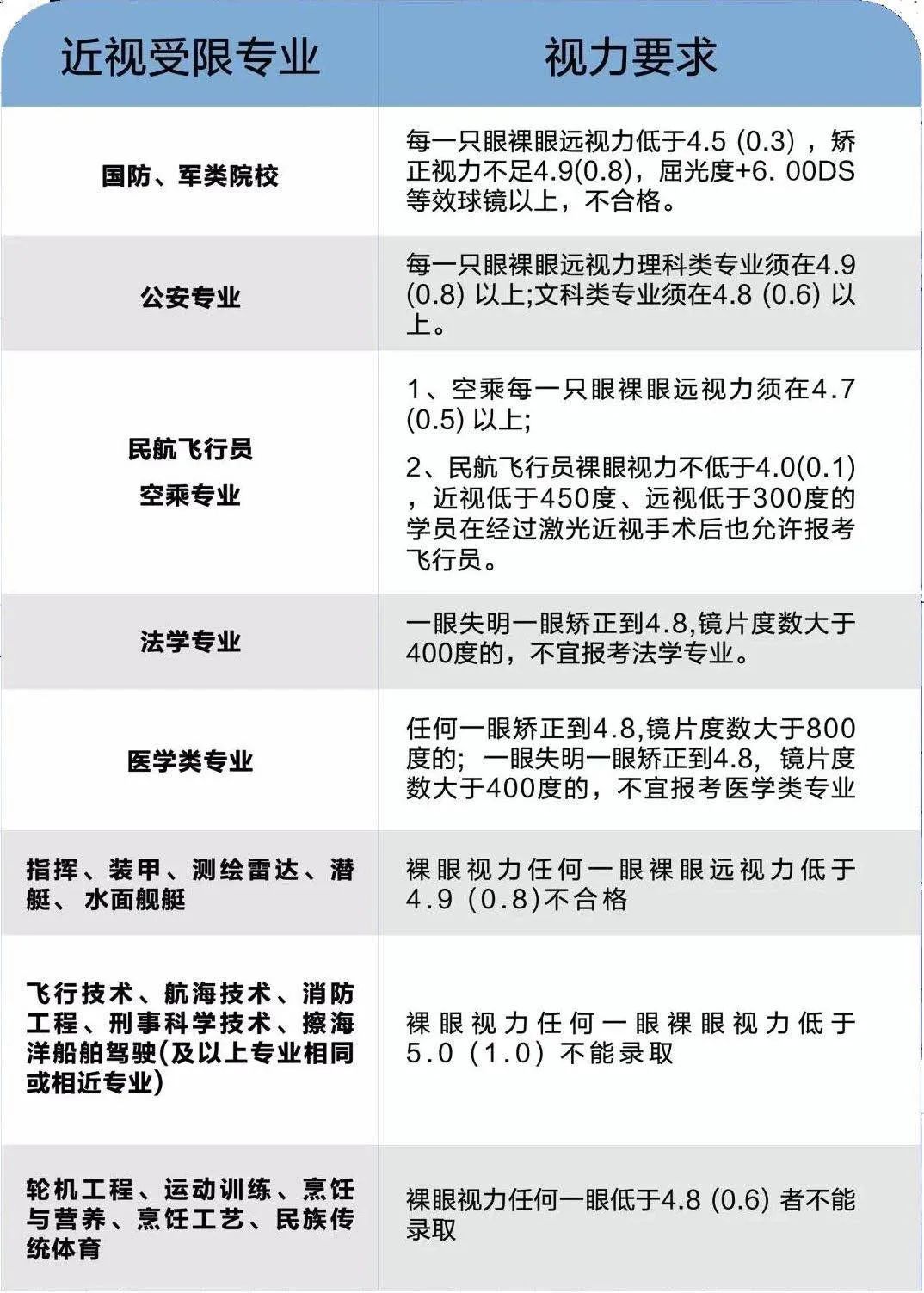 近視不僅會給同學們的日常生活帶來大大小小的困擾,而且還會對高考的直接影響!有許多大學專業(yè)有明確規(guī)定:患有近視的考生不能報考!哪怕你成績再優(yōu)秀,這些專業(yè)都注定和你無緣!