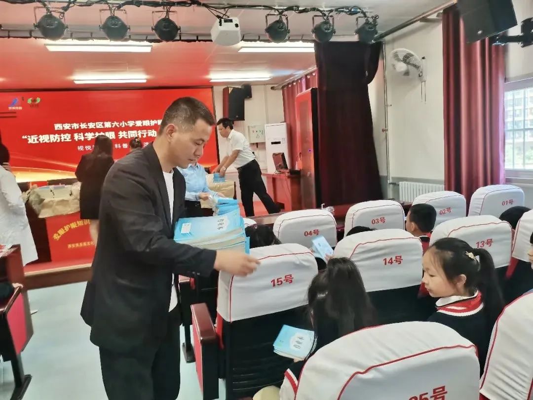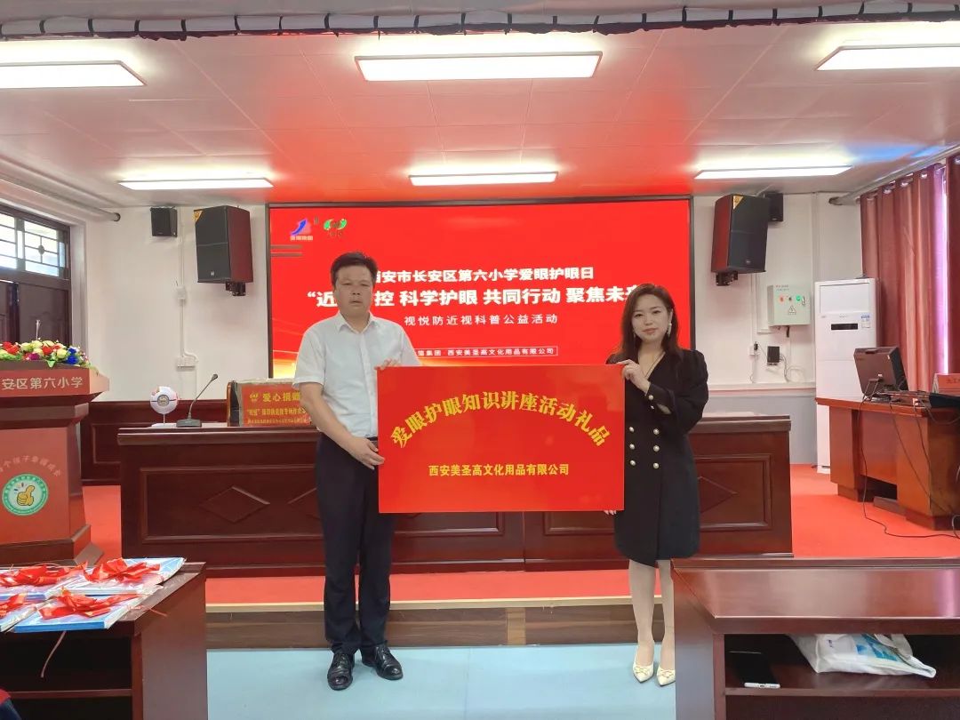 6月6日,陜西金箔集團(tuán)旗下子公司西安美圣高文化用品有限公司聯(lián)合長(zhǎng)安區(qū)醫(yī)院專業(yè)眼科醫(yī)生走進(jìn)長(zhǎng)安區(qū)第六小學(xué)(以下簡(jiǎn)稱“長(zhǎng)安六小”),進(jìn)行“視悅”防近視科普公益活動(dòng)。