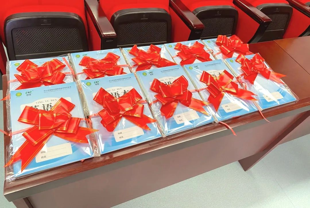“視悅”公益行愛心捐贈(zèng)小組與長(zhǎng)安區(qū)第六小學(xué)學(xué)校領(lǐng)導(dǎo)進(jìn)行物資交接儀式,為學(xué)生分發(fā)“視悅”綠色環(huán)保防近視專利作業(yè)本。