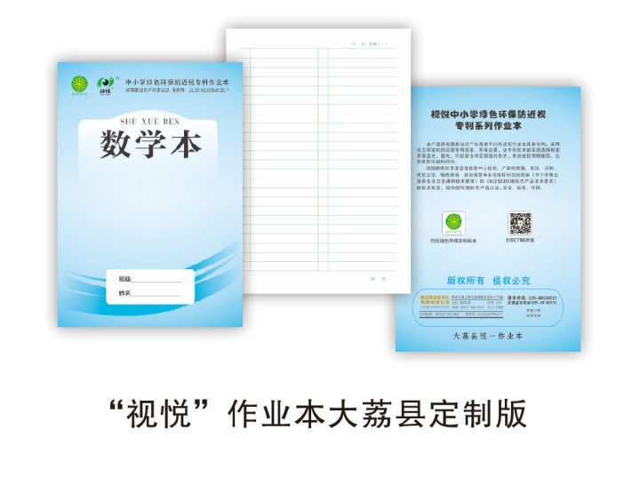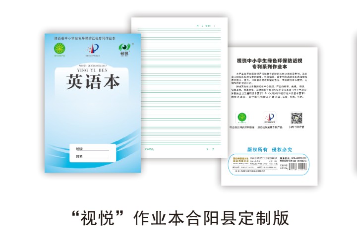 為配合一些地方的教育教學(xué),滿足地方需求,美圣高公司在原“視悅"作業(yè)本的基礎(chǔ)上,設(shè)計(jì)出多種定制版“視悅”中小學(xué)綠色環(huán)保防近視專利系列作業(yè)本。這類作業(yè)本嚴(yán)格按照國(guó)家和地方標(biāo)準(zhǔn),封面、封底設(shè)計(jì)加入了地方的特有元素,地域色彩濃郁,內(nèi)頁(yè)版式科學(xué),符合地方使用習(xí)慣,作業(yè)本的規(guī)格、種類豐富多樣,更具實(shí)用性和美觀性,能有效保護(hù)孩子的視力健康。目前,美圣高公司己為渭南韓城市、臨渭區(qū)、合陽(yáng)縣、大荔縣,榆林榆陽(yáng)區(qū)、綏德縣、高新小學(xué)、高新五小,漢中洋縣等市(區(qū))縣和學(xué)校設(shè)計(jì)出定制版“視悅”中小學(xué)綠色環(huán)保防近視專利系列作業(yè)本,受到師生高度認(rèn)可。